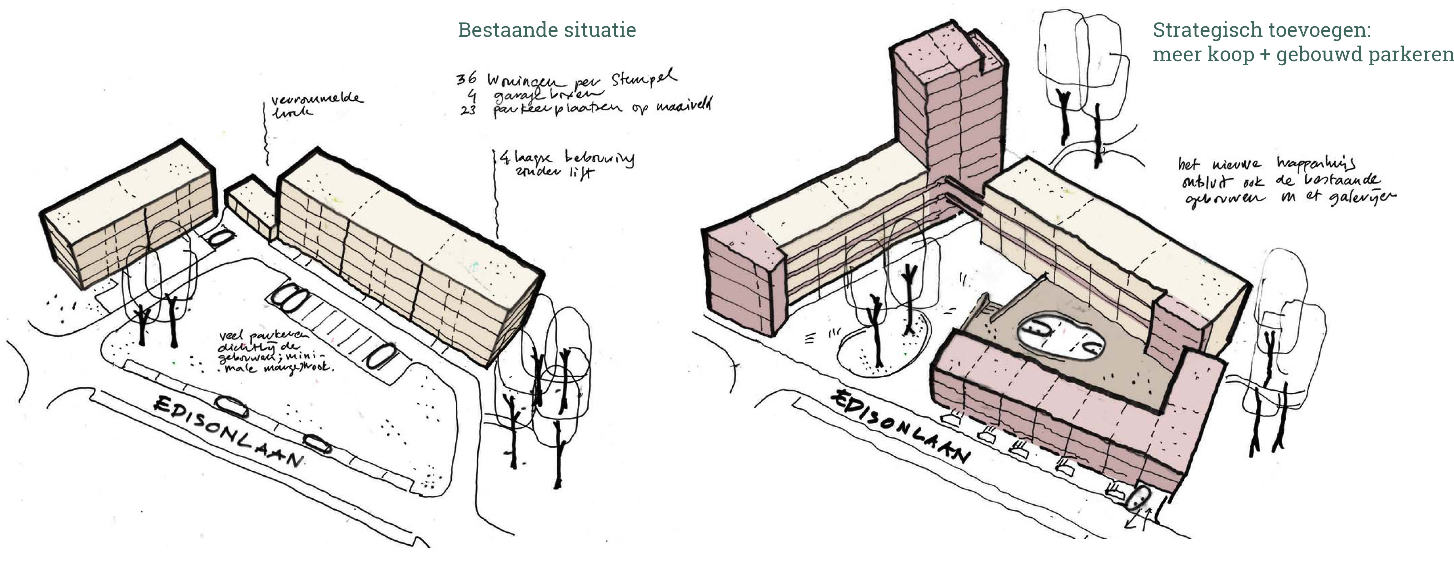 De aanpak van de wederopbouwwijk is een kans om de huidige woningnood te verlichten. Maar hoe kun je slim verdichten terwijl je recht doet aan bestaande unieke kwaliteit van lucht, licht, ruimte en ook nog verbeteringen toevoegt? De structuur van de naoorlogse wijk leent zich om bouwstenen te herhalen. Zo verdichten we stempels met nieuwe types, verbeteren we de anonieme ruimte met ogen op straat. In onze gereedschapskist zitten slimme bouwstenen voor optoppen, koppen toevoegen en plinten transformeren. Zo vinden we passende plekken voor meer woningen en voor nieuwe doelgroepen. Met onze sociale en ruimtelijke gebiedsscan kunnen wij snel ontdekken waar het beschikbare budget het meeste effect heeft. Voor Hengelo Noord maakten we zo een strategische kansenkaart met transformatielocaties met hoge impact. Voor een woningcorporatie in Deventer onderzochten we in de studie Powerhouses hoe we locaties met slecht gebruikte garageboxen kunnen benutten voor kleinschalige modulaire woningen voor thuisloze jongeren.