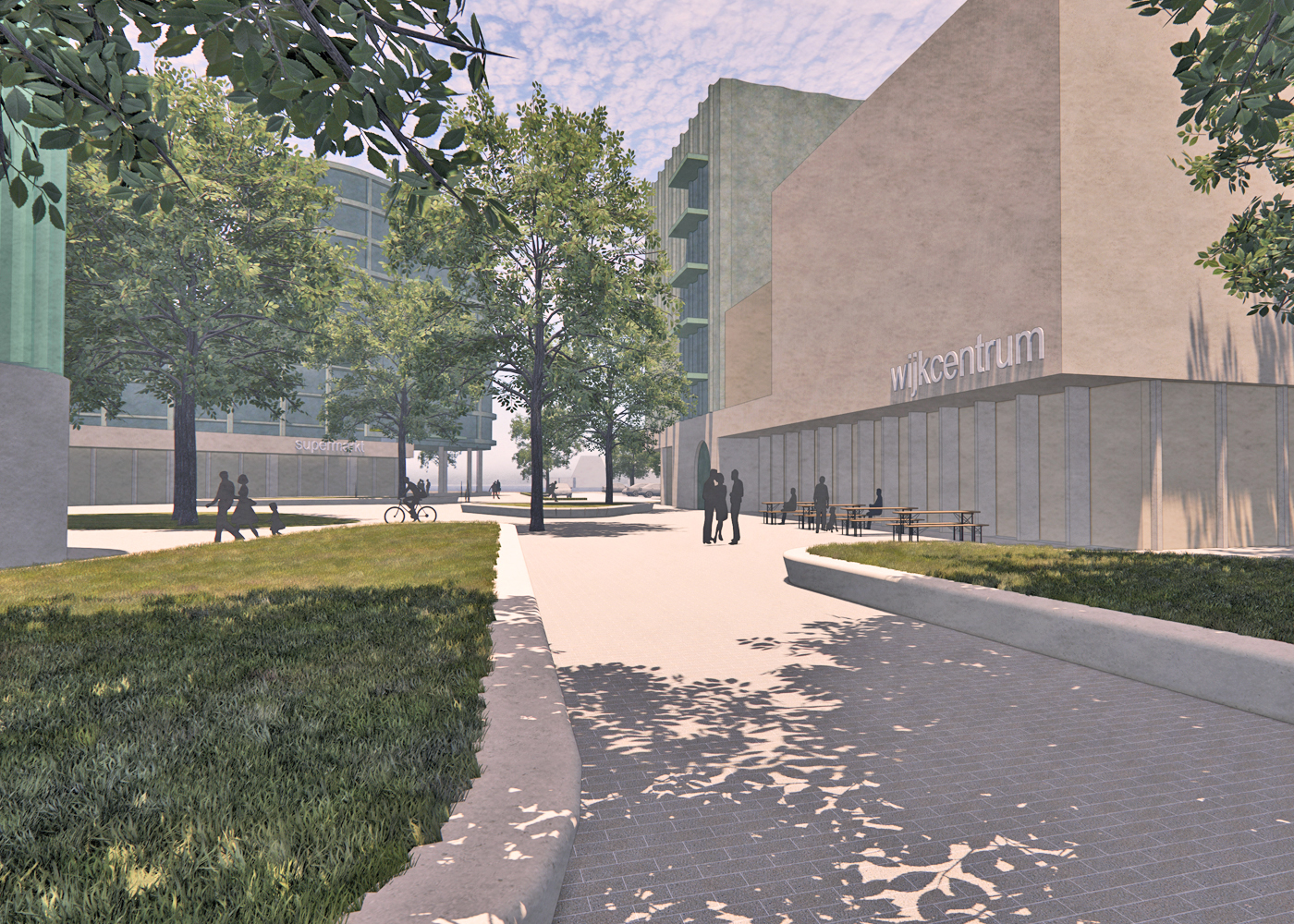 Het vernieuwde centrum krijgt een groen autovrij hart; een centrale ontmoetingsplek in de wijk waar jong en oud elkaar kunnen ontmoeten. Het park en het centrum zijn met elkaar verknoopt op een groen plein. Het wordt een gezellige plek waar altijd wat te doen is!