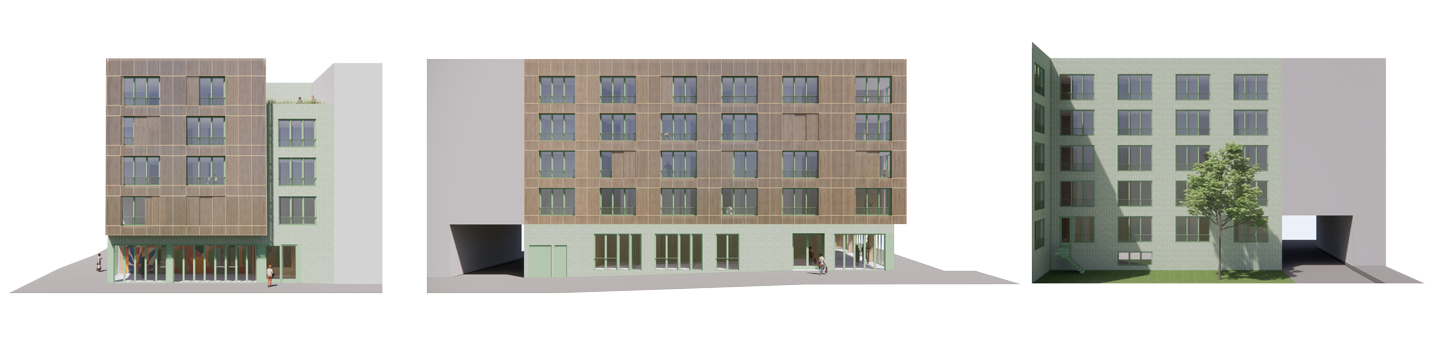 Het Passantenpension huisvest 55 studio’s voor passanten; zij zijn vaak plotseling dakloos geworden door echtscheiding, uitzetting of andere ingrijpende gebeurtenissen. Om dit te kunnen verwerken is een eigen plek noodzakelijk; een rustige, frisse studio biedt als compacte zelfstandige woonruimte de geborgenheid die de doelgroep nodig heeft. In het gebouw wordt straks het Passantenpension en de Buurtkamer van Centrumeiland gehuisvest. Wanneer de bewoners behoefte hebben aan sociaal contacten afleiding, zoeken ze de levendigheid van de Buurtkamer op. Dat is de plek voor ontmoetingen met buren en buurtgenoten; een huiskamer voor het pension en een schakel in het sociale en ondernemende leven van de buurt. De gevelluiken geven de bewoners vrijheid om zich terug te trekken in alle rust en privacy, of juist licht binnen te laten komen. De functies bevinden zich samen in één gebouw, met een architectonisch gebaar. Desondanks hebben beide functies een eigen identiteit.